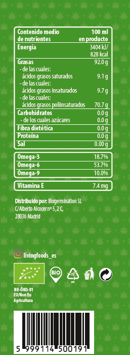 El aceite de cáñamo prensado en frío es reconocido por su excepcional perfil nutricional.