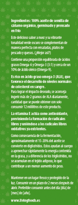 ALA (Omega-3): El ALA contribuye al mantenimiento de los niveles normales de colesterol en sangre (con una ingesta diaria de 2g de ALA).