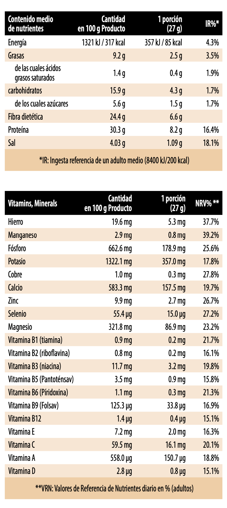 Peso neto: 540 g (20 raciones; 27 g por ración)